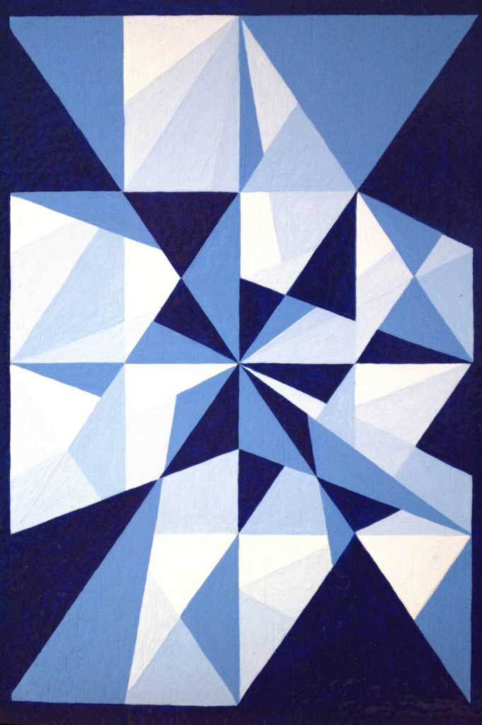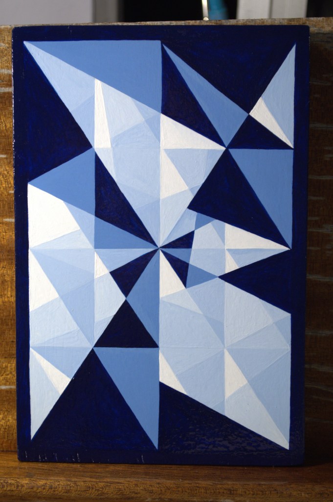 Because of my frequent moving, I tend to place boxes on places I can not find, and now my paint is somewhere in a box in our container. Luckily, I brought two blue acrylic colors and woodprimer white to my current location, so I got creative and made several wooden panels while using these in different tones.